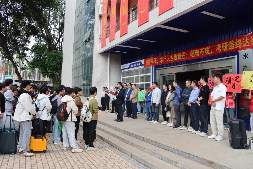 12月19日下午,水产楼前暖意洋溢、祝福声声。学院为2026年考研学子举行送考活动,党委副书记孔沛球、副院长陈华谱,全体辅导员、毕业班班主任及团委学生骨干齐聚现场,共同为即将奔赴考场的学子壮行。学院团委为毕业生送上精心准备的“加油礼包”——手写贺卡、寓意“一举夺魁”的向日葵和“续航满分”的能量棒,承载着全院师生的深厚情谊与殷切期盼。孔沛球副书记在致辞中以“深水良种”勉励学子:“历经潜心培育,今朝正是破...