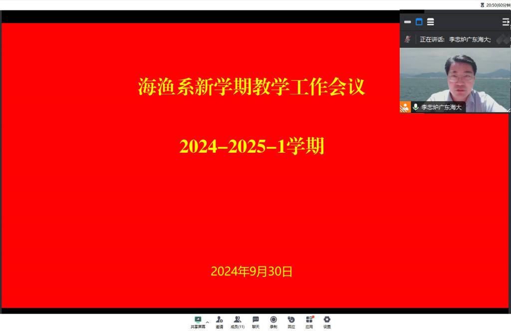 9月30日下午,海渔系召开了2024年秋季学期本科教学工作会议,本次会议通过线上线下相结合的方式进行。