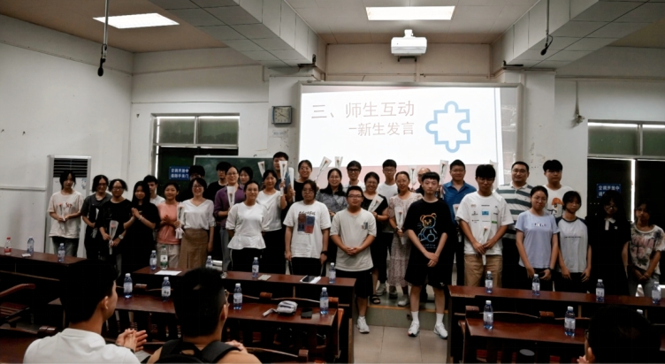 紧接着,生物科学专业往届优秀学生代表曾业涛、江嘉颖、彭嘉淇、李思瑶和黄洛敏5位同学分享了各自的大学成长感悟,并为学弟学妹们送上了美好的祝福。最后,与会教师分别分享了个人的教学经历和科研方向,表达了对2024级全体新生的美好寄语与祝福;新生们也踊跃发言,此外,新生代表们向与会教师送上了教师节的鲜花和祝福。