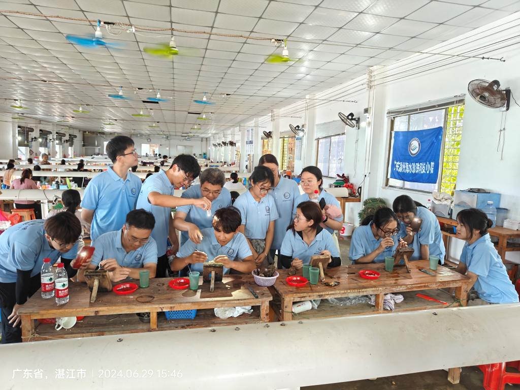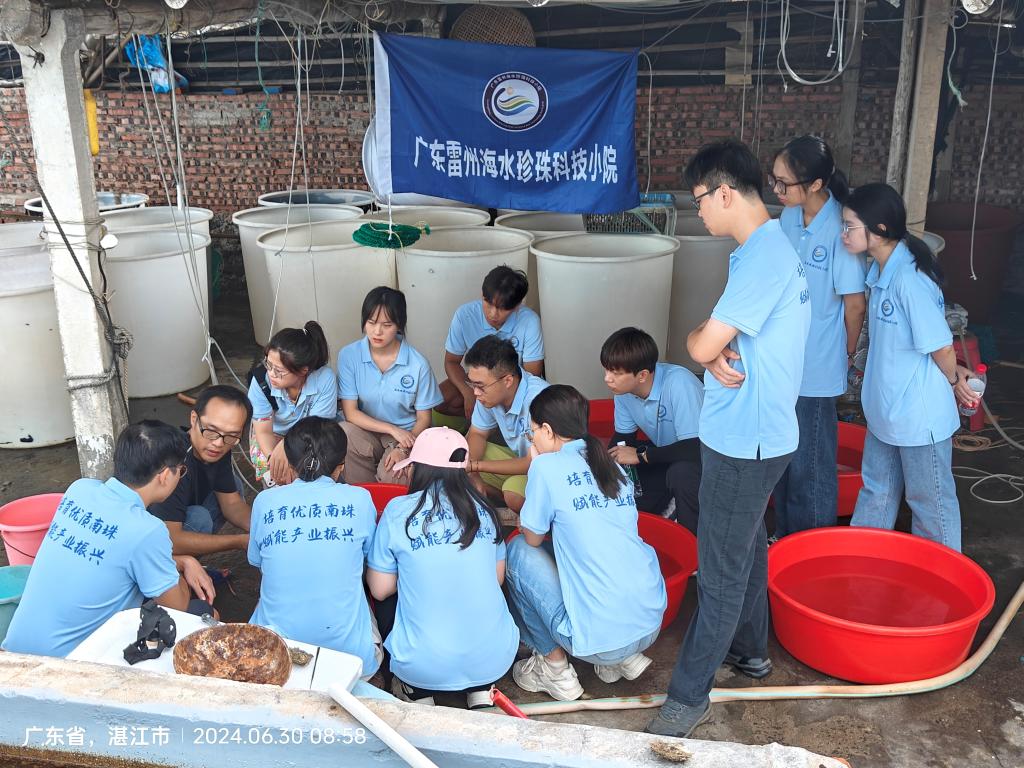 为贯彻落实习近平总书记给科技小院同学们的回信精神和2024年中央一号文件精神,激发研究生为农业、农村和农民服务的热情和责任感,提升研究生从事渔业科技服务的使命感,助力我校“双百行动”取得新成效;6月29日-30日,广东雷州海水珍珠科技小院17名师生在覃斗镇流沙村和英楠村开展了2024年教育实践培训。