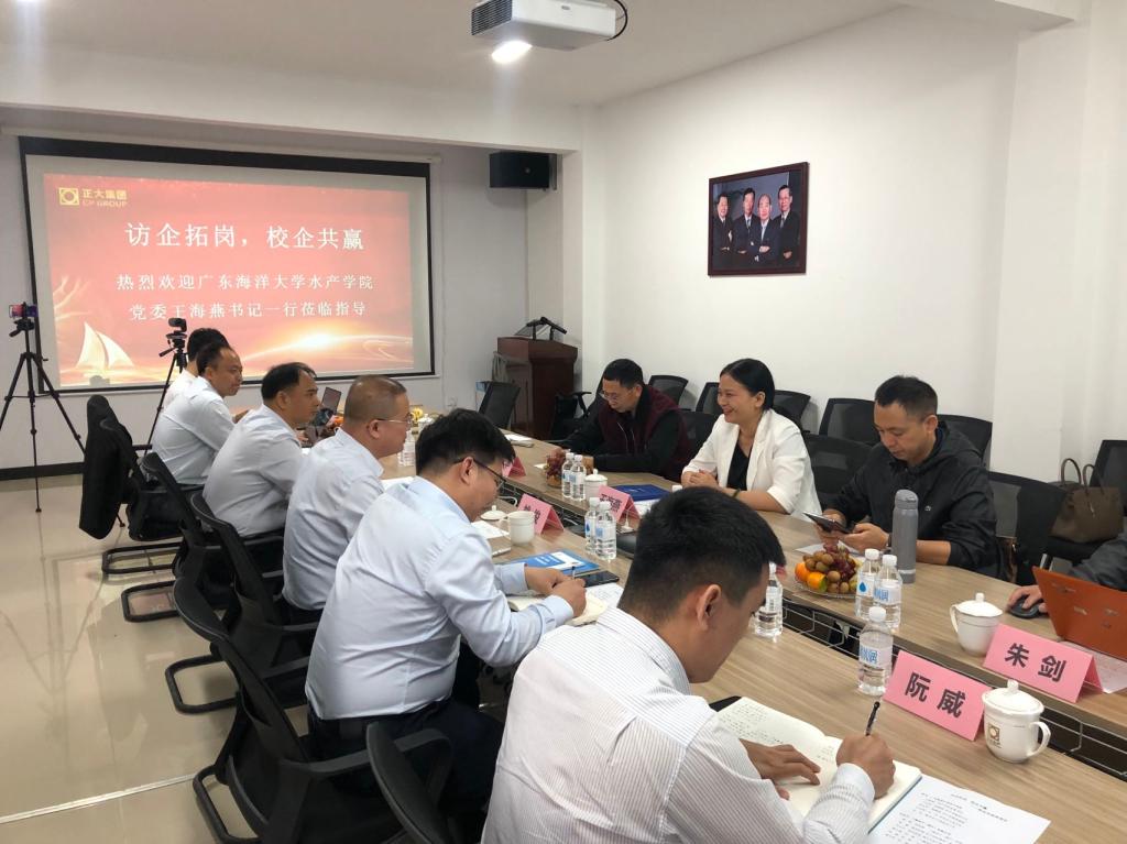 3月16日上午,学院党委书记王海燕率养殖系王忠良主任、养殖系杨世平副教授、办公室孔沛球主任、辅导员朱剑老师一行等赴正大集团卜蜂水产(湛江)有限公司开展访企拓岗促就业活动。正大集团卜蜂水产(湛江)有限公司总经理姚俊,正大集团水产饲料事业广东广西人力总监副、总经理张蕾,正大集团湛江区水产事业财务总监、副总经理马文平,卜蜂水产(湛江)有限公司迈特场场长郭小瑞等出席交流活动。
