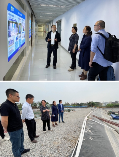杨奇慧一行首先走访了碧沃丰生物科技(广东)股份有限公司,双方就实习基地建设、高校与企业协同育人、产学研合作等问题进行了深入交流,并初步达成专业实习基地建设意向。随后,前往广东德宁水产科技有限公司试验养殖场,听取了公司领导对本公司基本情况的介绍和对学生培养情况汇报,并实地参观和考察了公司养殖基地。
