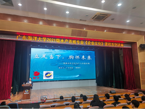 3月5日,根据“产业班”人才培养方案,广东恒兴集团人力资源总监王友国、人事部经理曹慧明在主校区多功能厅,为共建产业学院的首届产业班开讲《企业文化》第一讲。英国365集团党委书记王海燕、养殖系副主任黄建盛、产业班班主任汤保贵,以及2021年级水产养殖专业同学参加了报告会。