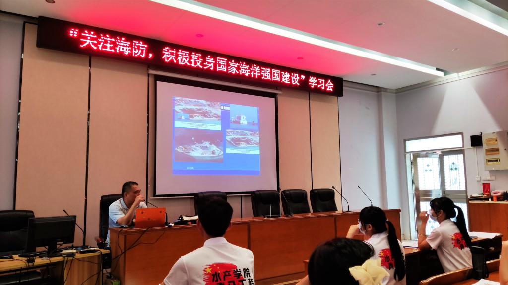 朱剑老师首先以“让关爱国防成为一种习惯”的宣传片开场,引出学习会主题,并深入浅出讲解了中国海防历史的发展。由当前我国海防面临的忧患到新时代中国海防战略,从“南海争端”到台湾问题,朱剑老师详细剖析了我国海防面临的复杂安全形势,让学员们正确认识到在海防上个人与国家的关系,中国与世界的关系。他提到,随着中国海洋强国建设的步伐,民间活动要大力向海发展,特别是走向深海、远海,积极开发海洋资源,有效地使用南海的岛屿与海域,提高岛屿与海域的占有度与使用度。最后,他向青年人提出期望,希望青年人能够自觉认识当代大学生的历史使命和人生意义,树立正确的世界观、人生观和价值观,自觉把个人的理想追求融入国家和民族的事业中,紧跟国家发展的潮流,投身到海洋强国的建设中去。