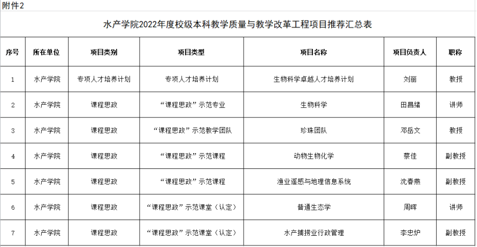 2022年校级教育教学改革项目及2022年度校级本科教学质量与教学改革工程项目,经个人申报、学院初审、组织校内专家评审,根据学校教务处下达到学院的名额及项目限制申报数,教育教学改革项目拟择优推荐评分排名前6项,本科教学质量与教学改革工程项目推荐各项目类型共计7项。现予以公示(项目明细见附表)。