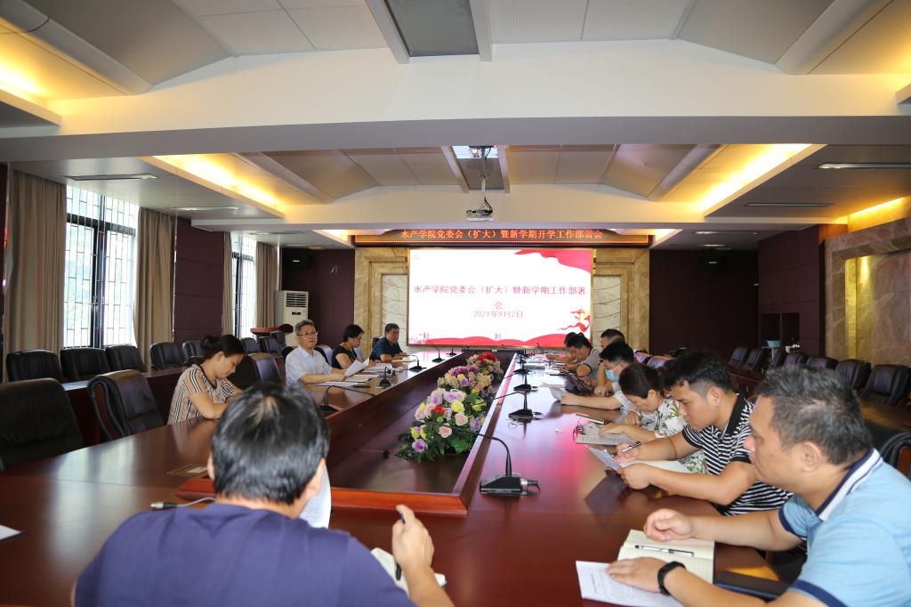 9月2日上午,英国365集团在水产楼216室召开学院党委会(扩大)暨2021年秋季学期开学工作部署会议,学院领导、党委委员、各系(中心、办、基地)主任、支部书记、组织员等20多人参加了会议。会议由学院党委书记梁朝辉主持,