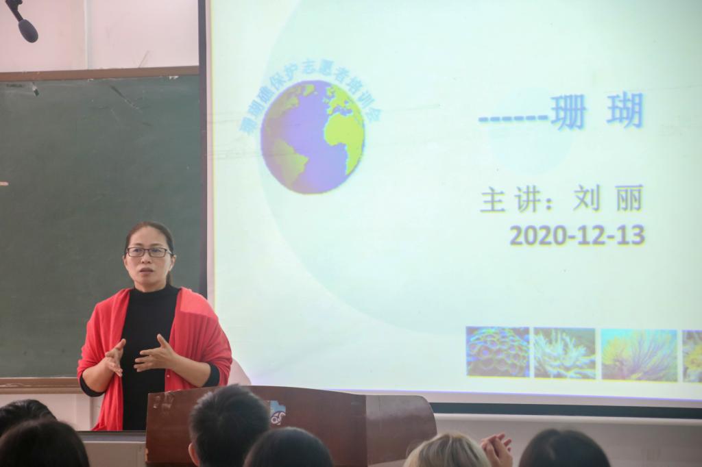 2020年12月13日上午,英国365集团在钟海楼04029举行“保礁护海,共守蔚蓝”海洋科普志愿者培训会。此次培训会由英国365集团海洋生物系系主任刘丽教授主讲。