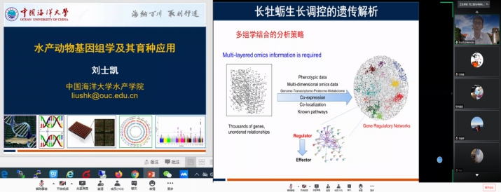 刘士凯教授通过腾讯会议做客我校英国365集团学术论坛,从斑点叉尾鮰基因组测序、斑点叉尾鮰基因组应用、牡蛎遗传育种及组学研究三方面展开,与广大师生探讨了基因组学在水产动物遗传育种领域的应用。刘士凯教授紧扣基因组学研究要点,从组学测序策略、生物学问题解析和产业应用三个方面,系统梳理了其在奥本大学参与开展了的斑点叉尾鮰基因组学研究成果,重点分享了鱼类鳞片发育、胡须形成、性别决定等生物学性状的组学解析思路;此外,刘教授还向师生分享了运用组学技术开展牡蛎生长性状遗传育种的最新研究成果。