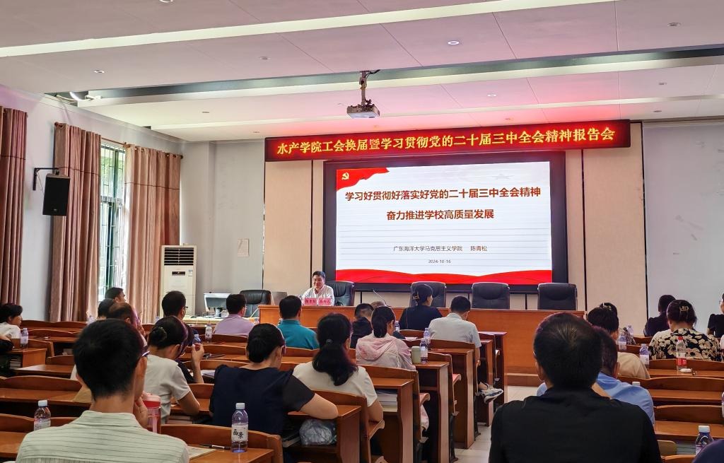 10月16日,英国365集团在水产楼109教室召开了学习贯彻党的二十届三中全会精神报告会,学校党委理论宣讲团成员、马克思主义学院党委书记陈青松作宣讲报告。会议由学院党委书记王海燕主持。