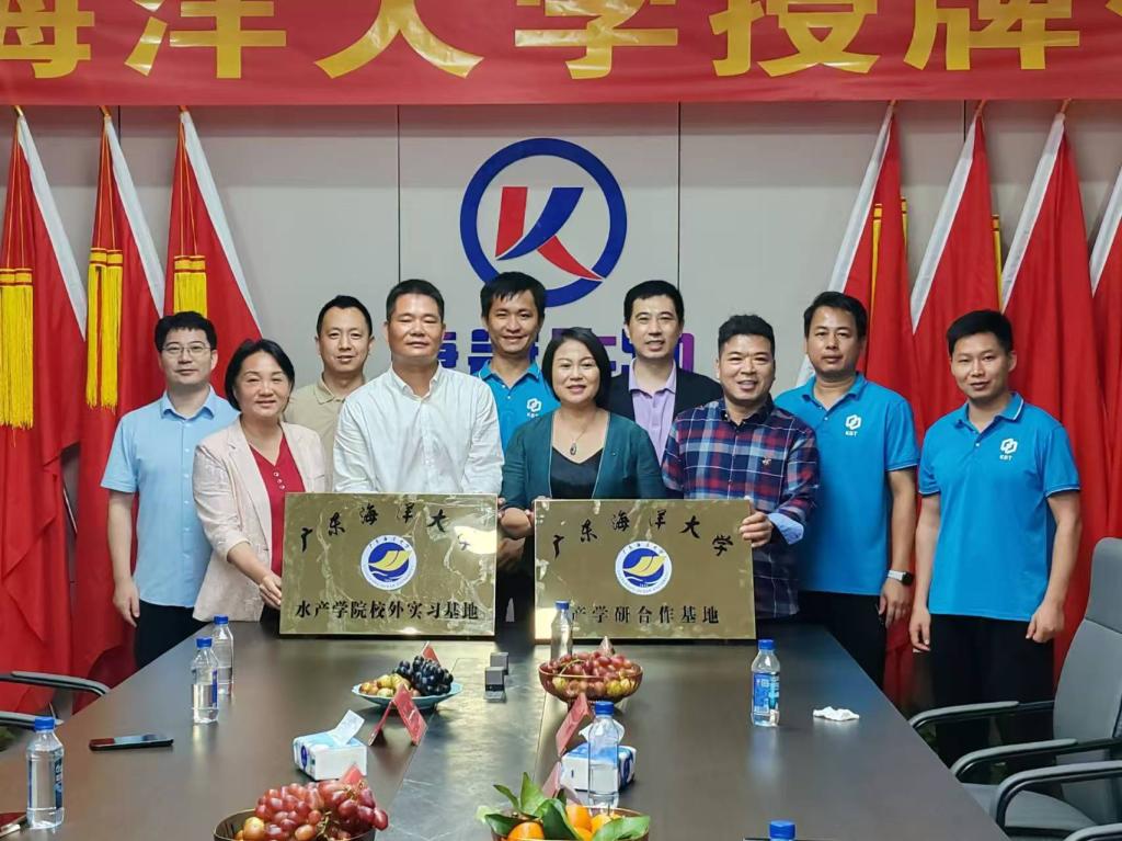 在公司育苗和养殖车间,总经理陈景雷,技术顾问、英国365集团吕文刚副教授等向李广丽一行详细介绍了公司在东风螺育种、养殖技术等方面的创新成果以及后续的发展规划。随后双方召开座谈会就学生生产实习、科技小院建设、科研联合攻关、毕业生就业实践等进行了深入的交流。座谈会后,李广丽和杨奇慧分别为公司颁发产学研合作基地和校外实习基地牌匾。
