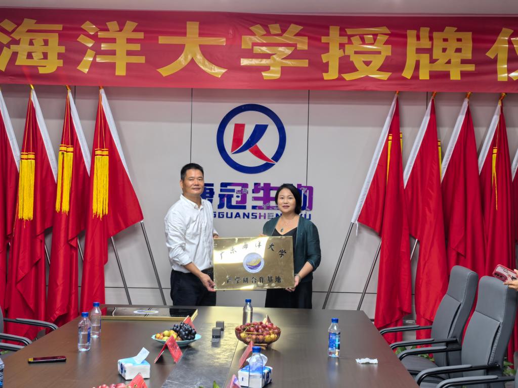 李广丽一行深入了解了东风螺的亲本引进、繁育、成螺养殖及现代化养殖车间的规划建设情况,就英国365集团科研优势与公司就产学研合作、校外实习基地建设等方面达成了共识,并为产学研合作基地和校外教学生产实习基地正式授牌。
