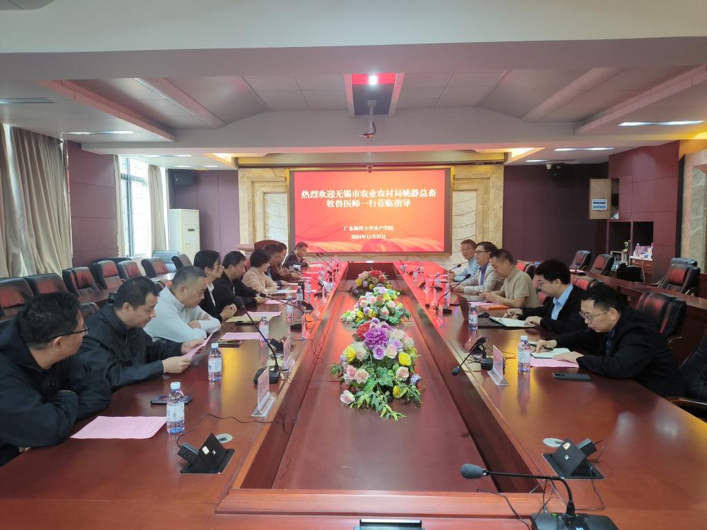 陈华谱对无锡市农业农村局总畜牧兽医师姚静一行的到访表示欢迎,并对学院的基本情况进行了介绍,同时针对学院在海水养殖方面的优势和做法进行了分享。