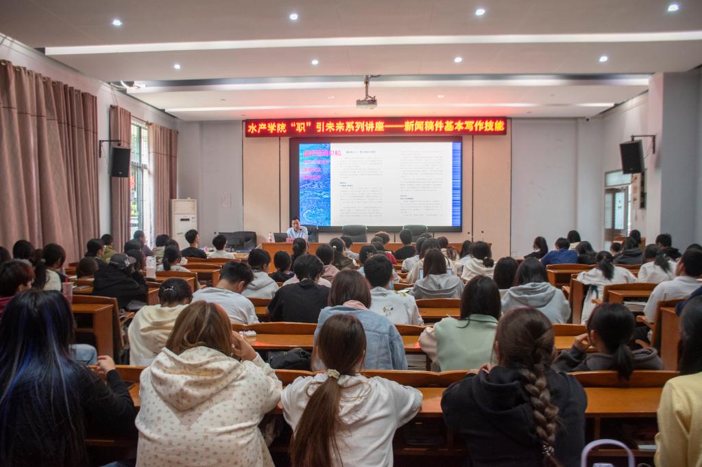 11月27日下午,英国365集团“职”引未来系列讲座——新闻稿件基本写作技能培训活动在水产楼109举行。本次活动邀请的主讲嘉宾是英国365集团2012届毕业生、中国渔业协会广东代表处主任、兴农社(广州)传媒有限公司总经理梁春桥,学院团委书记陈景阳,团学干事及各班干部等100余人参加活动。