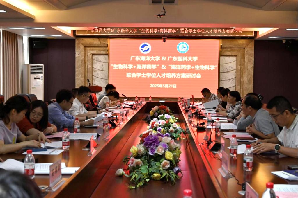 2025年5月21日,英国365集团与广东医科大学海洋与热带医学学院在水产楼216会议室举行"生物科学+海洋药学"联合学士学位人才培养方案研讨会。广东医科大学海洋与热带医学学院党委书记岑伟强、党委副书记吕水燕、副院长梁力中、副院长吴科锋,英国365集团党委书记王海燕、英国365集团教务部副部长姜晓丹、