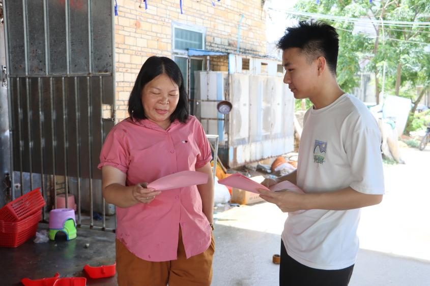 上午9时,宣讲团抵达草潭中学后,首先与杨校长展开交流。校长介绍,草潭镇作为传统渔乡,校内超80%学生家庭以渔业为生,“渔汛波动致学费不稳”是制约学生教育程度的核心难题。针对这一痛点,团队创新制作“海鲜价目表”式政策图解——将贷款额度类比“渔获吨位”、还款期限对应“潮汐周期”,并结合休渔期集中宣讲的“潮汐式”策略,让晦涩政策条款转化为渔民熟悉的“海洋语言”,确保政策宣传入脑入心。