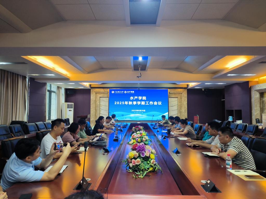 2025年8月29日,学院在水产楼216召开了2025年秋季学期工作会议。学院领导班子成员、副科以上人员以及党支部书记参会,会议由党委书记王海燕主持。