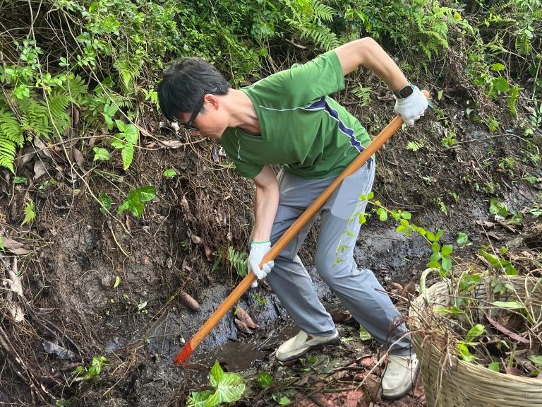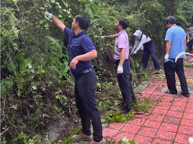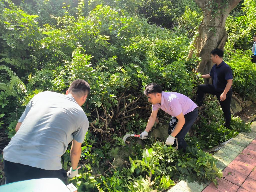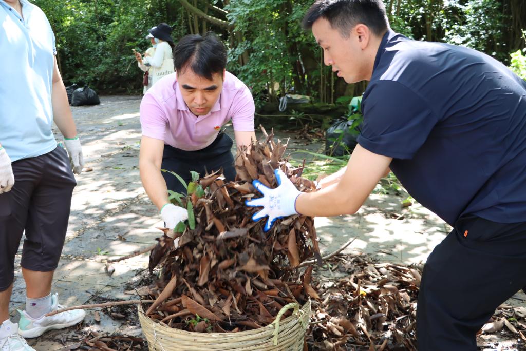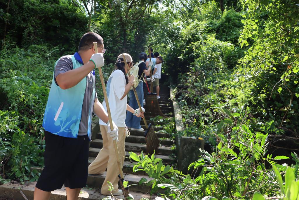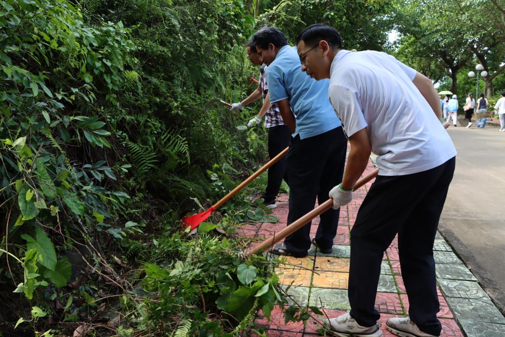 学院师生分工协作,对划分的东山公园第5区域开展全方位清洁。大家手持扫帚、锄头、铁铲、镰刀、耙子、垃圾袋等工具,重点清理了第5区域水沟及公园广场的杂树、杂草、攀藤植物等垃圾杂物,经过近两个小时的集中整治,公共区域环境焕然一新。