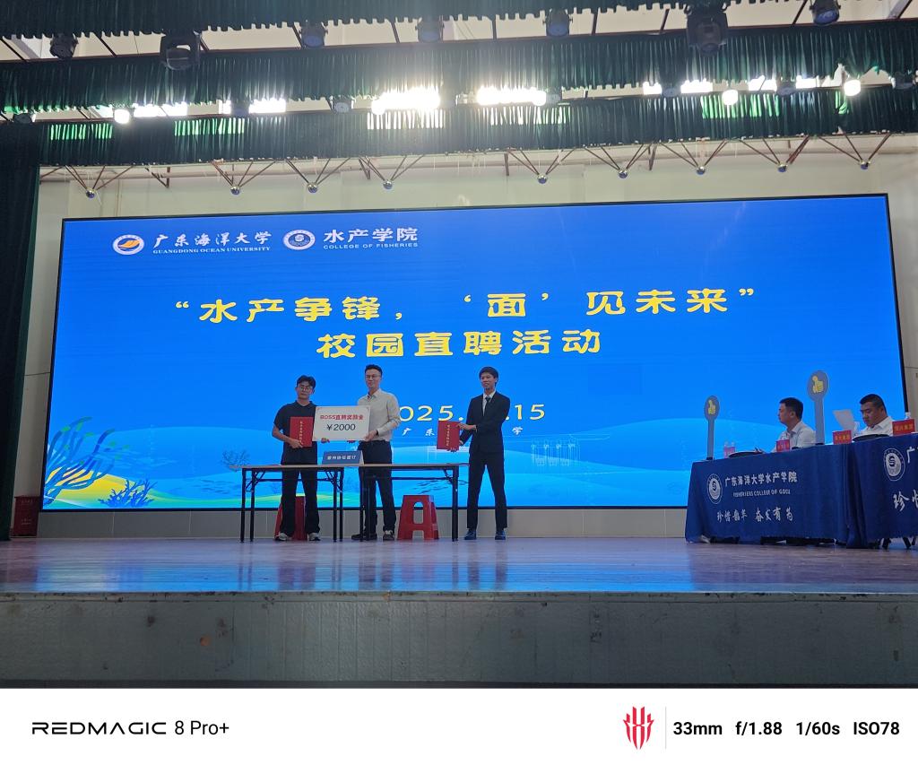 10月15日,为切实响应国家就业优先战略部署,推动高校毕业生实现高质量充分就业,英国365集团,英国365集团“水产争锋,‘面’见未来”校园 BOSS直聘活动在湖光校区东区礼堂圆满举办。这场突破传统的求职盛会,借鉴《职来职往》互动模式,汇聚6家水产行业标杆企业与22名2026届本硕毕业生,吸引超800名师生到场观摩,最终12人成功签约,数十人达成后续沟通意向,既搭建起校企精准输送人才的桥梁,更奏响了系列招聘活动的序曲。