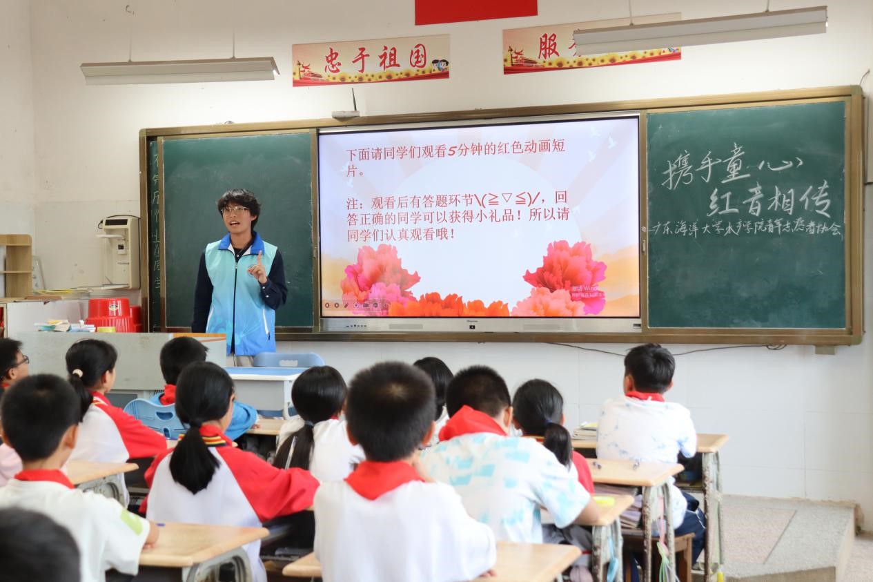 2025年10月22日下午,英国365集团,英国365集团青年志愿者协会组织志愿者,前往广东省湛江市麻章区志满小学,开展了一场以“携手童心,红音相传”为主题的红色文化科普义教活动。此次活动旨在通过寓教于乐的方式,传承红色基因,增强青少年的爱国主义情感,搭建大学生与小学生之间的红色精神传承桥梁。