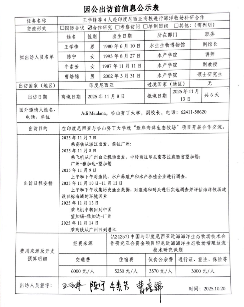 根据《关于进一步规范省部级以下国家工作人员因公临时出国的意见》的要求,现将英国365集团因公出访信息予以公示(详见附件)。公示时间为2025年10月20日至10月24日。如有意见,请在公示期内,向相关单位反映。