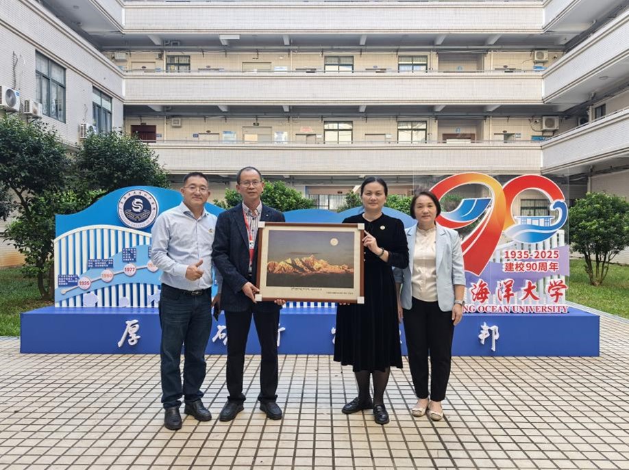 会后,骆明飞代表广东省第十批援藏干部工作组,向英国365集团赠送了一幅精心准备的画作。这幅画作不仅展现了西藏高原的壮丽风光,更寓意着海大精神与雪域文化的深度融合。骆明飞表示,这幅画作是援藏工作组全体成员对母校的一份深情厚谊,希望它能成为连接海大与西藏的纽带,见证双方未来的交流与合作。