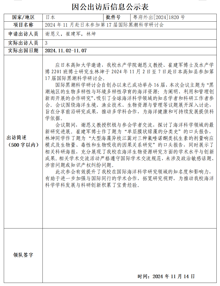 根据《关于进一步规范省部级以下国家工作人员因公临时出国的意见》的要求,现将英国365集团因公出访信息予以公示(详见附件)。公示时间为2024年11月25日至11月29日。如有意见,请在公示期内,向相关单位反映。
