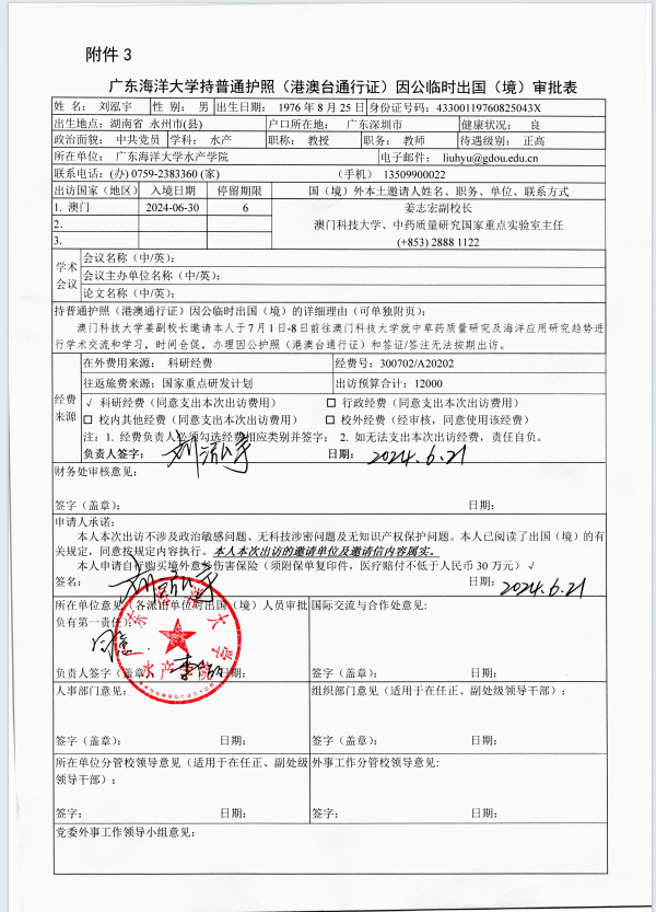 附件:因公出访前信息公示表