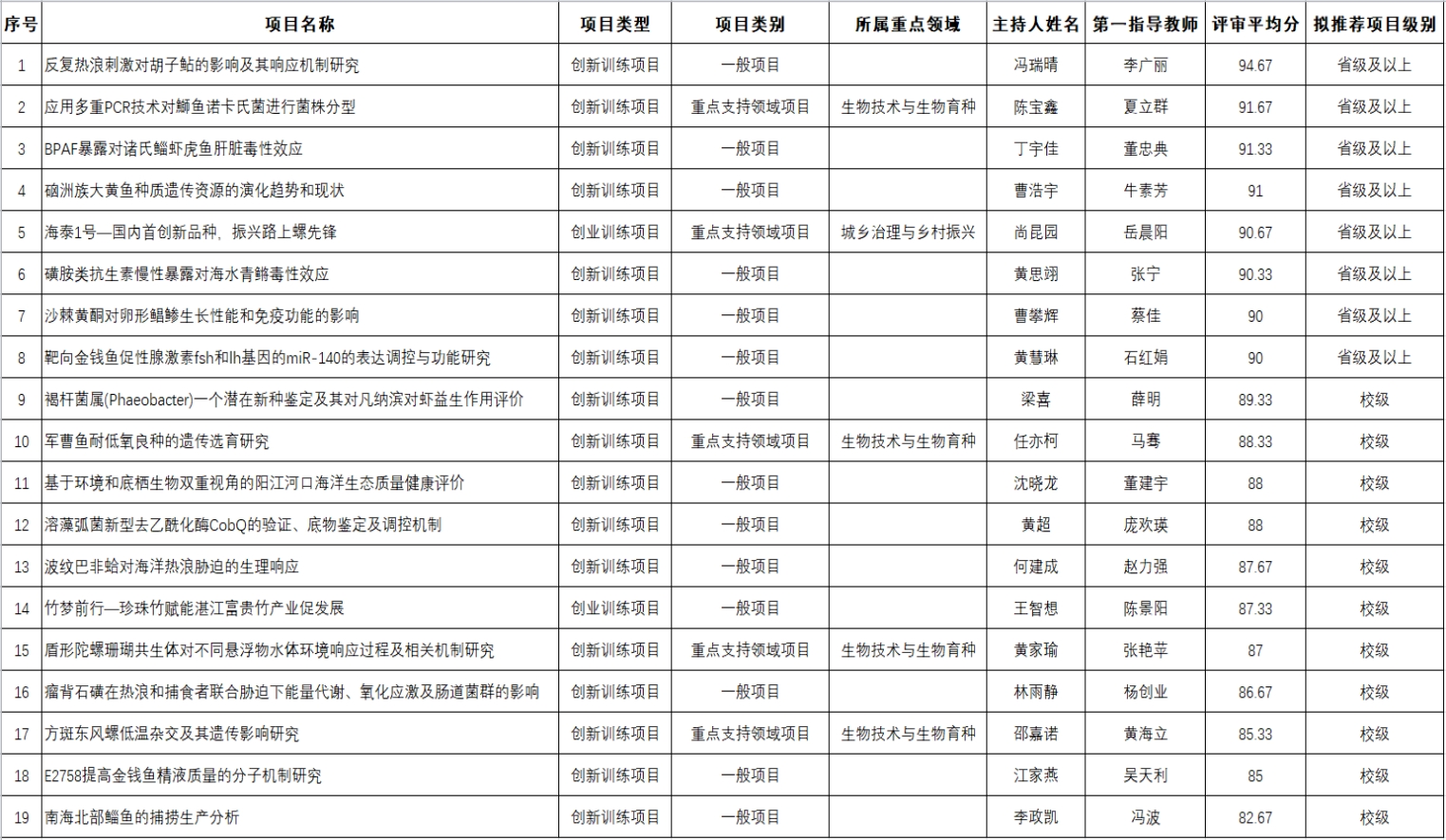 公示时间从5月27日~5月31日 17:00时止。公示期内如有异议,请联系院党政办欧老师,联系电话:2383236电子邮箱:scxydzb@gdou.edu.cn;如有违规违纪,联系纪委孔老师,联系电话:2383163,电子邮箱:scxyjw@gdou.edu.cn。来信请具实名与附联系方式,否则不予受理,并请客观陈述情况和问题,提供事实依据,坚持实事求是的原则,不得借机诽谤和诬告。公示期内无异议或有异议经核实后符合要求的项目,学院将推荐结果提交创新创业学院。