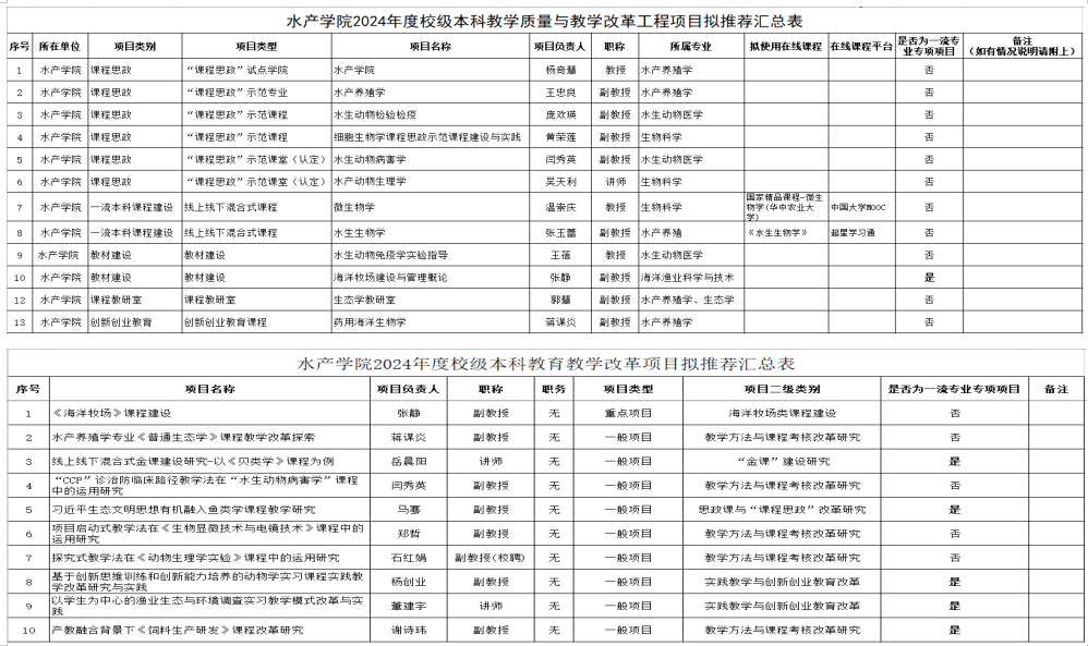 根据校教务部《关于开展2024年度校级本科教学质量与教学改革工程项目申报工作的通知》(校教务〔2024〕36号)《关于组织申报2024年校级教育教学改革项目的通知》(校教务〔2024〕37号)文件的要求,学院组织开展2024年校级本科教学质量与教学改革工程项目及教育教学改革项目的申报与评审工作。
