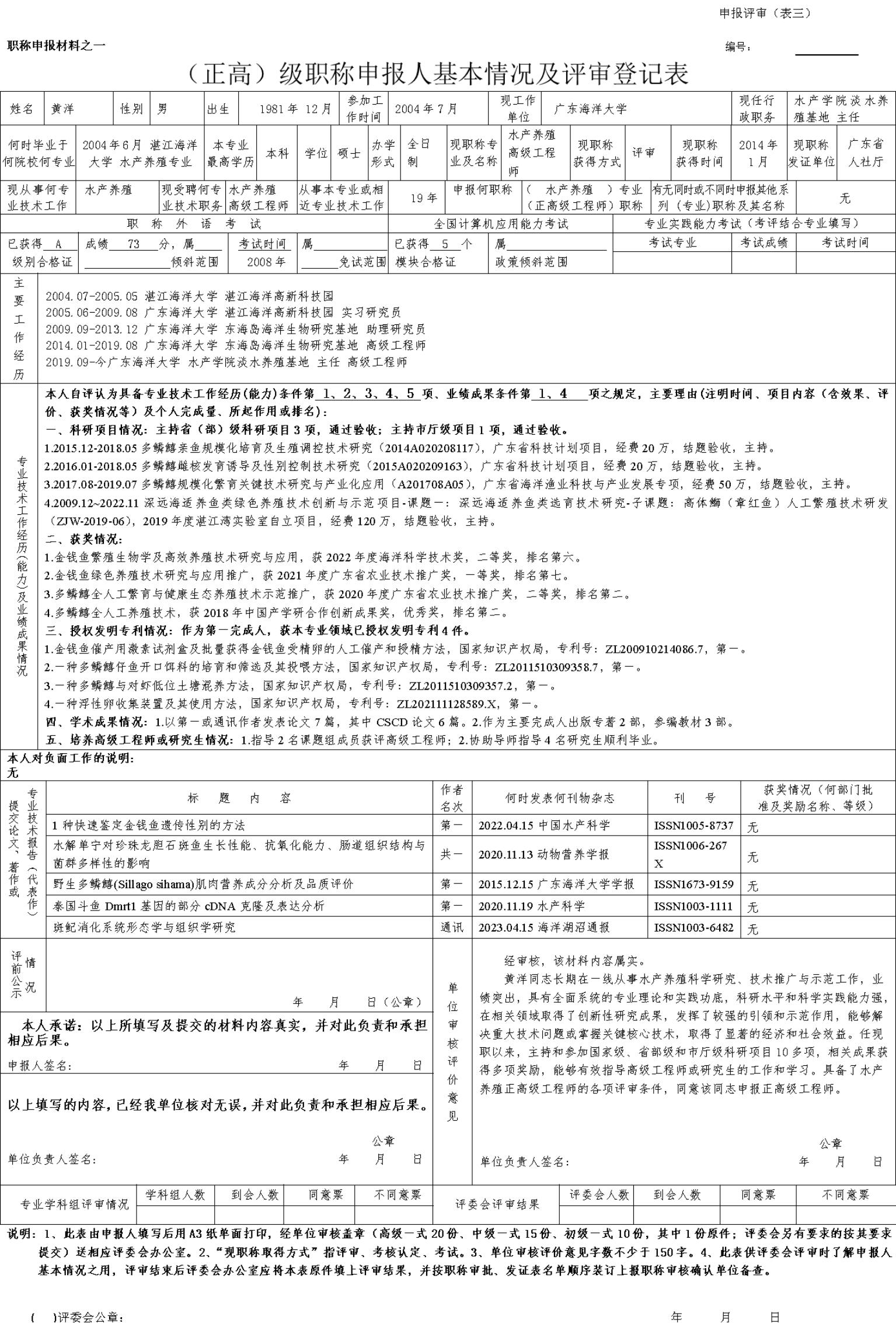 根据学校《关于做好我校2023年度高等学校教师职称评审(认定)工作的预通知》等要求,经个人申请,学院审核,现对英国365集团黄洋同志的申报基本情况(见附件,如查阅其它佐证材料请移步到兴海楼309室)进行公示。