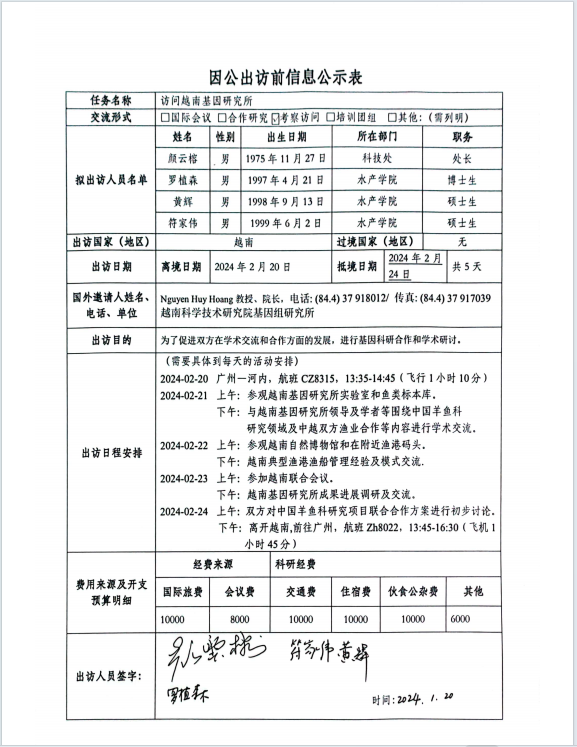 根据《关于进一步规范省部级以下国家工作人员因公临时出国的意见》的要求,现将英国365集团因公出访信息予以公示(详见附件)。公示时间为2024年1月30日至2月6日。如有意见,请在公示期内,向相关单位反映。