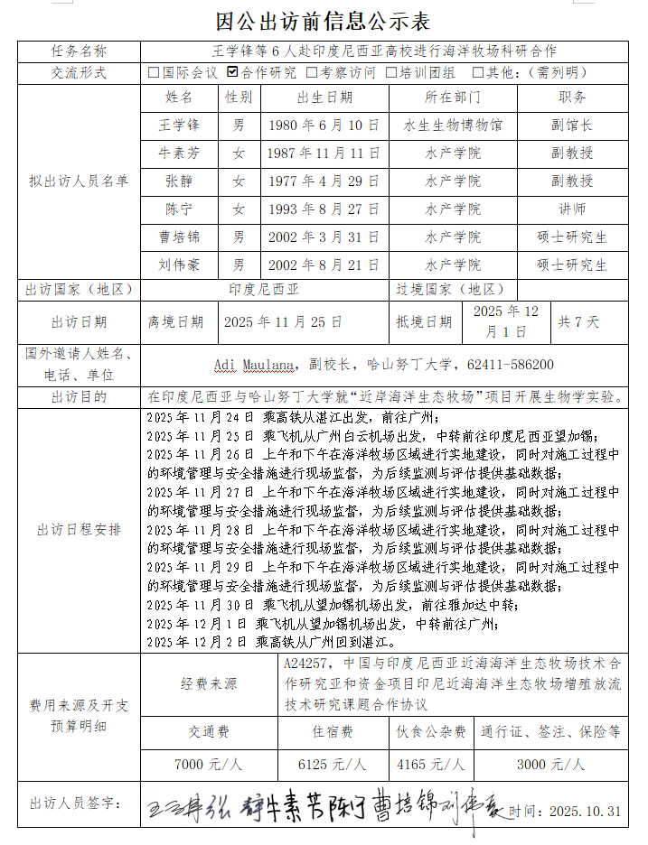 附件:因公出访前信息公示表