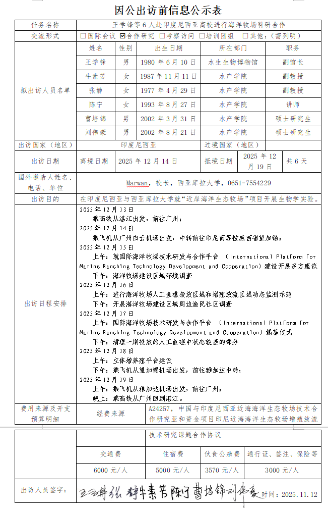 根据《关于进一步规范省部级以下国家工作人员因公临时出国的意见》的要求,现将英国365集团因公出访信息予以公示(详见附件)。公示时间为2025年11月12日至11月18日。如有意见,请在公示期内,向相关单位反映。