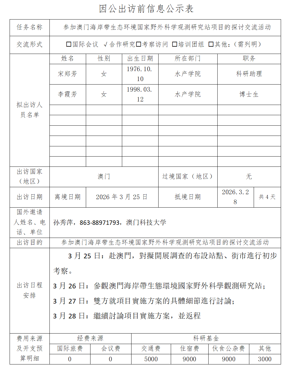附件:因公出访前信息公示表