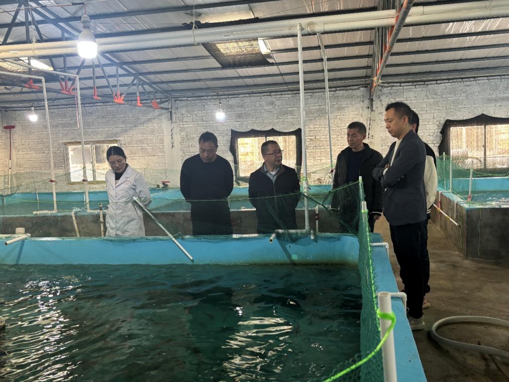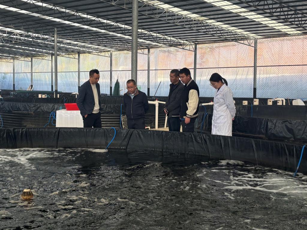 调研组一行首先来到科技小院的依托单位——广东合泰渔业科技有限公司。在生产车间,吴家文主席和杨元鑫主任详细听取了企业负责人关于马友鱼人工繁育、工厂化化养殖及市场开拓情况的介绍。作为中国农村专业技术协会批准设立的科技小院,该项目充分发挥了“政产学研”高度融合的优势。调研组对小院通过科技力量破解养殖难题、带动周边渔民致富的实践模式表示了高度肯定。