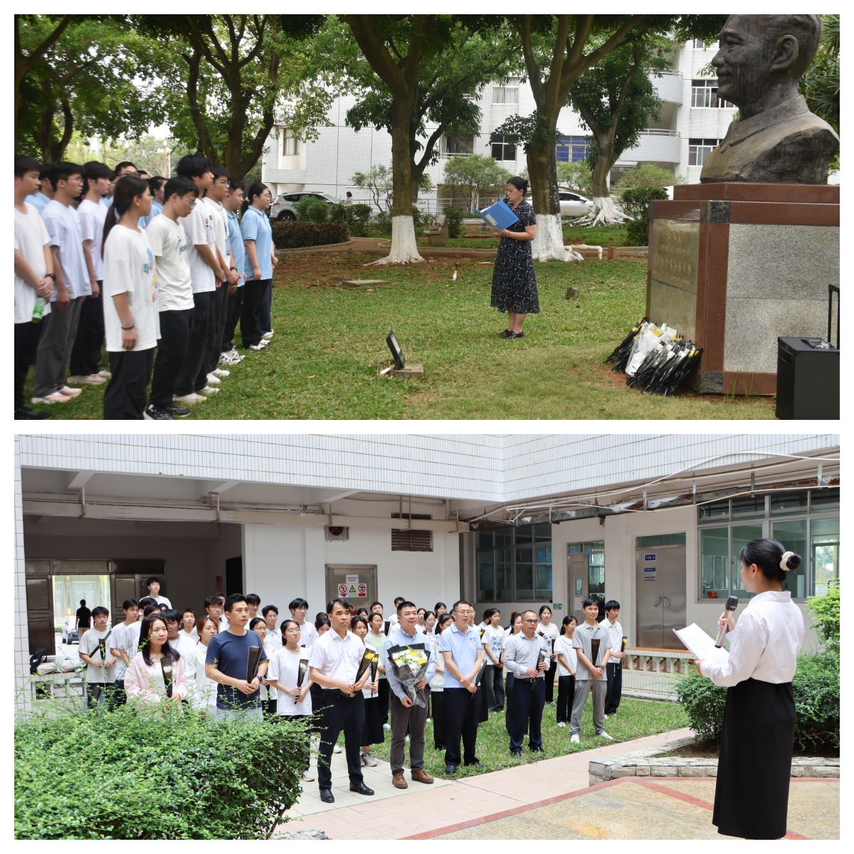活动中,王海燕、罗大极带领师生前往熊大仁、钟麟两位科学家铜像前,以清扫擦拭、敬献鲜花、鞠躬致敬等方式缅怀先辈,并分别讲授题为“珍珠砺心承远志,青春笃行践担当”、“ 赓续钟麟风骨,砥砺青春担当”的“思政第一课”。授课内容围绕熊大仁、钟麟两位科学家爱国爱民、扎根一线、潜心科研、勇于创新、甘于奉献的奋斗历程与突出贡献,重点讲述老一辈水产科学家“心怀家国的爱国心、攻坚克难的创新劲、脚踏实地的求实态、无私奉献的赤子情”的精神内涵,引导师生在实践中追思先贤、感悟初心,强化专业认同感与时代责任感。