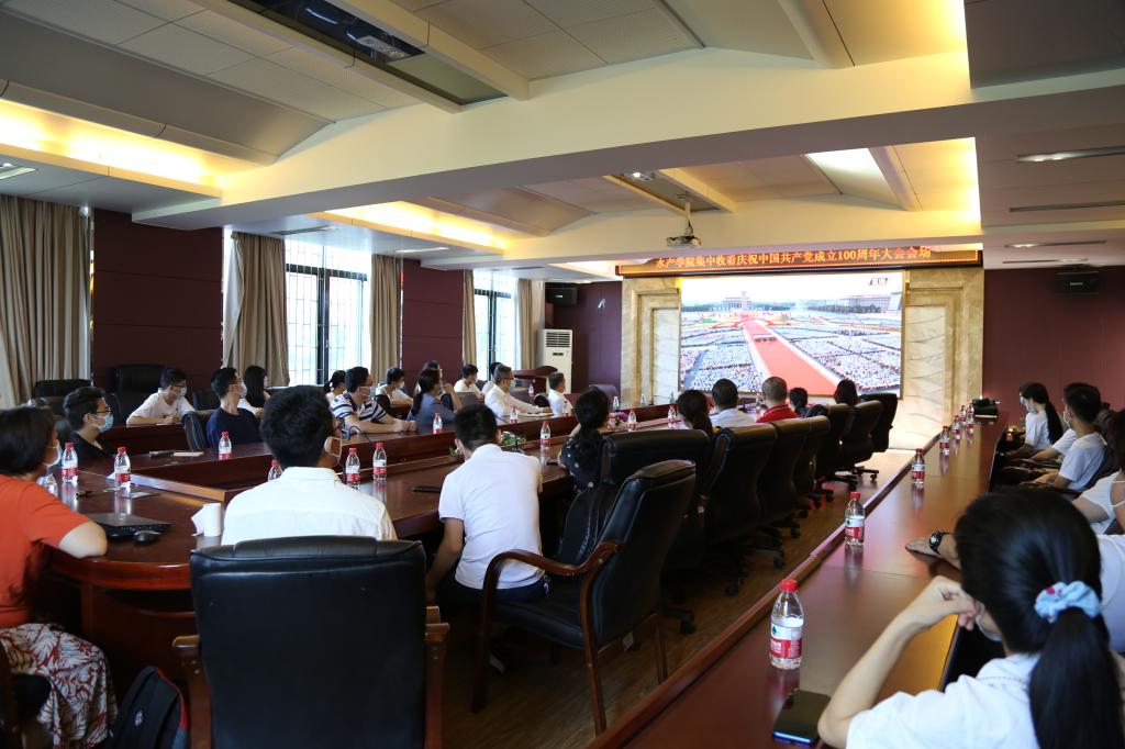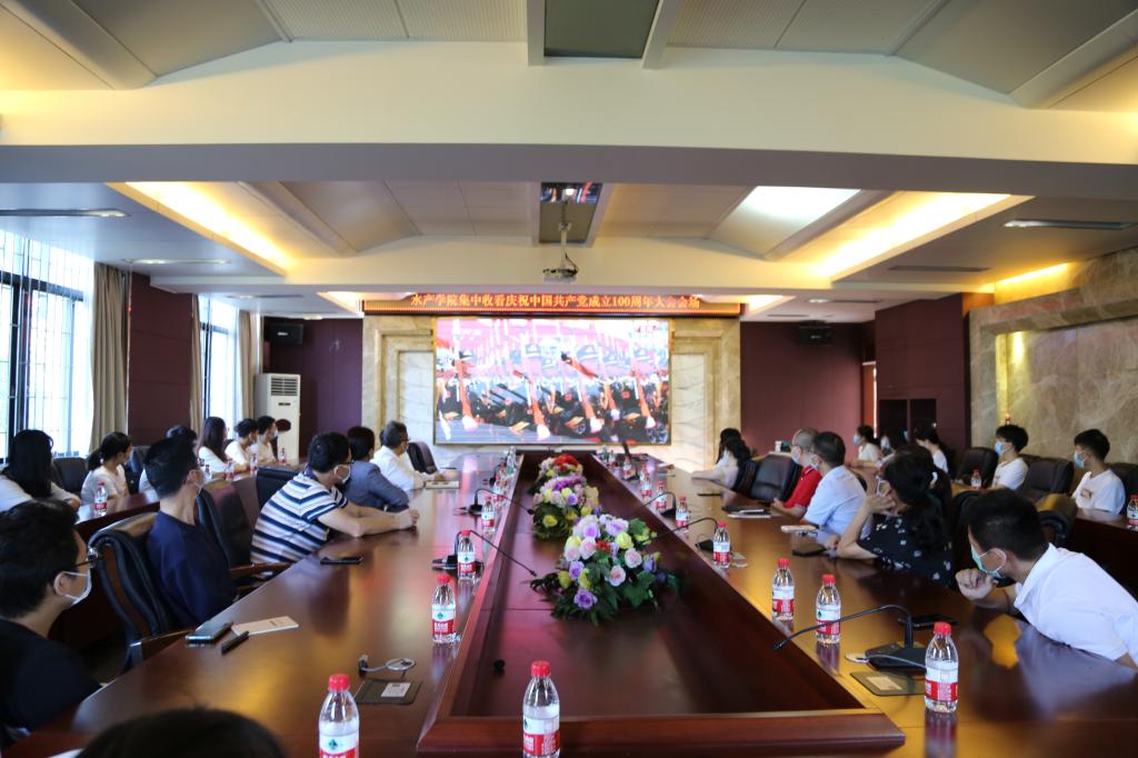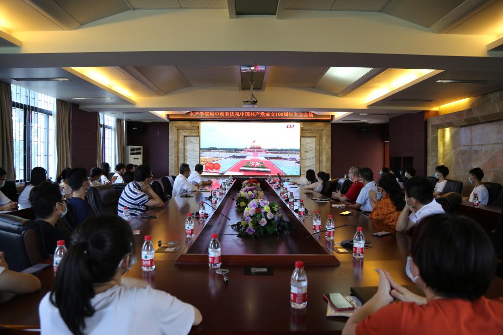 学院师生代表在水产楼216室收看庆祝大会直播盛况