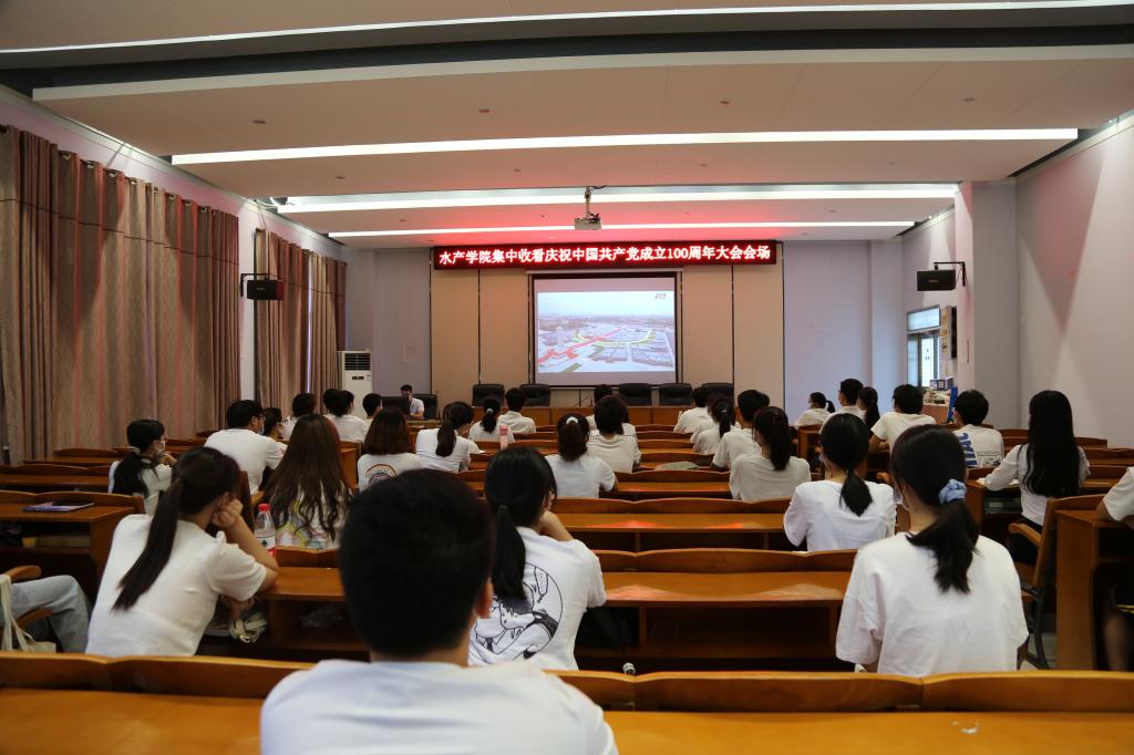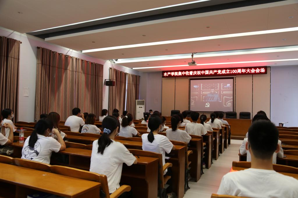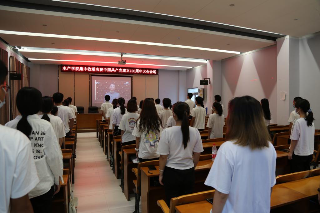 学院师生代表在水产楼109室收看庆祝大会直播盛况