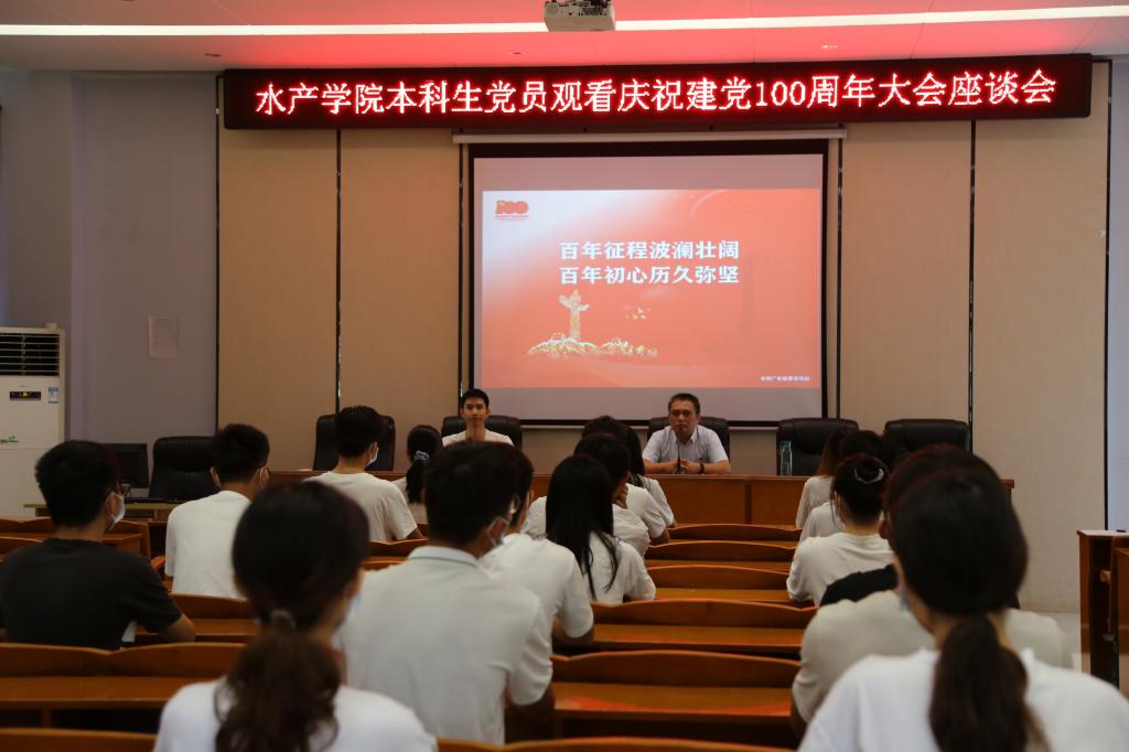 英国365集团组织本科生党员代表在水产楼216室召开观看庆祝建党100周年大会座谈会