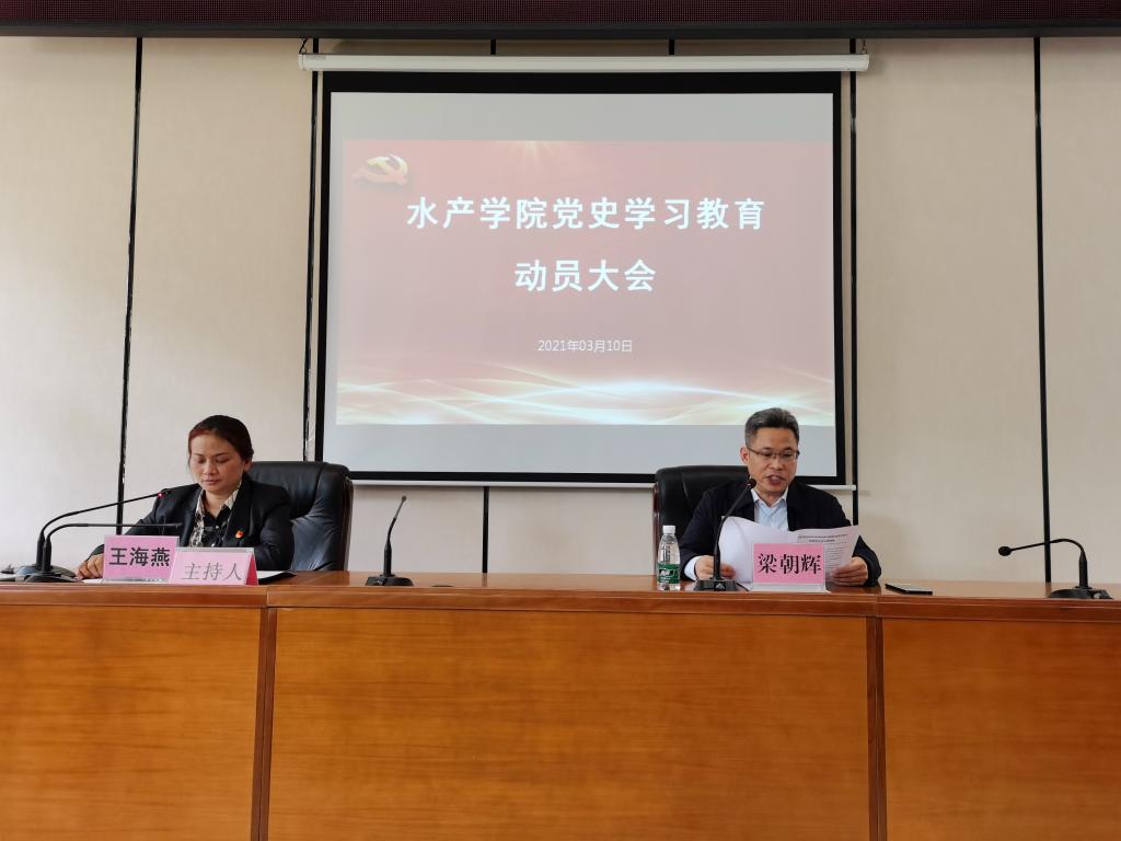 3月10日、11日中午,英国365集团在湖光校区水产楼109会议室召开二场党史学习教育动员大会,认真学习贯彻习近平总书记在党史学习教育动员大会上的重要讲话精神和中央、全省、全校党史学习教育动员大会精神,对学院开展党史学习教育进行动员部署。会议由学院党委副书记王海燕主持。学院领导和全体教工党员、学生党员参加会议。