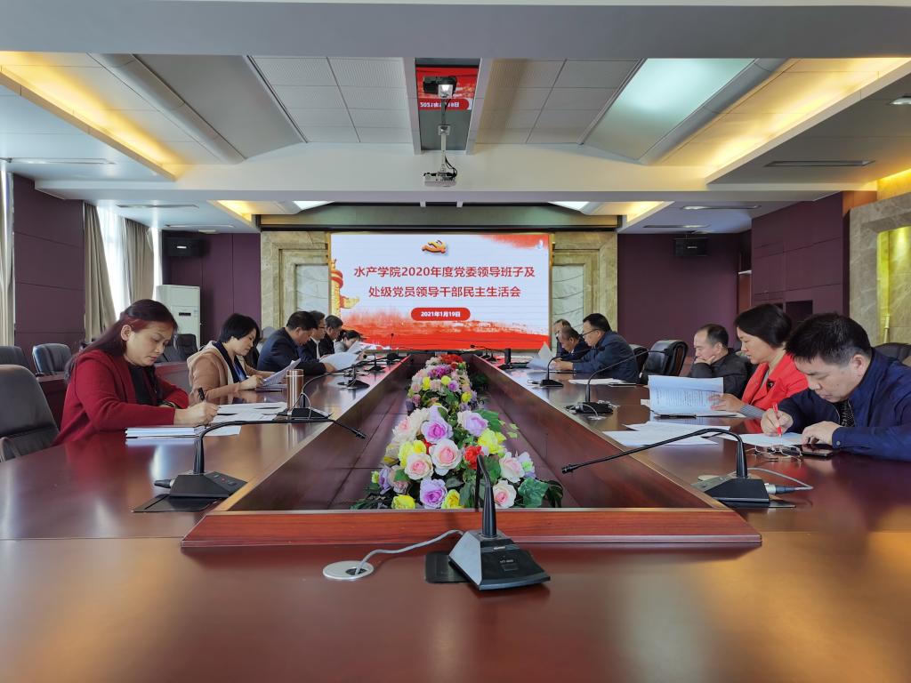 2021年1月19日下午,水产学院在水产楼216会议室召开2020年度党委领导班子及党员处级领导干部民主生活会,学校党委常委、副校长谭北平出席会议。会议由学院党委书记梁朝辉主持,学院处级干部、党委委员参加会议。