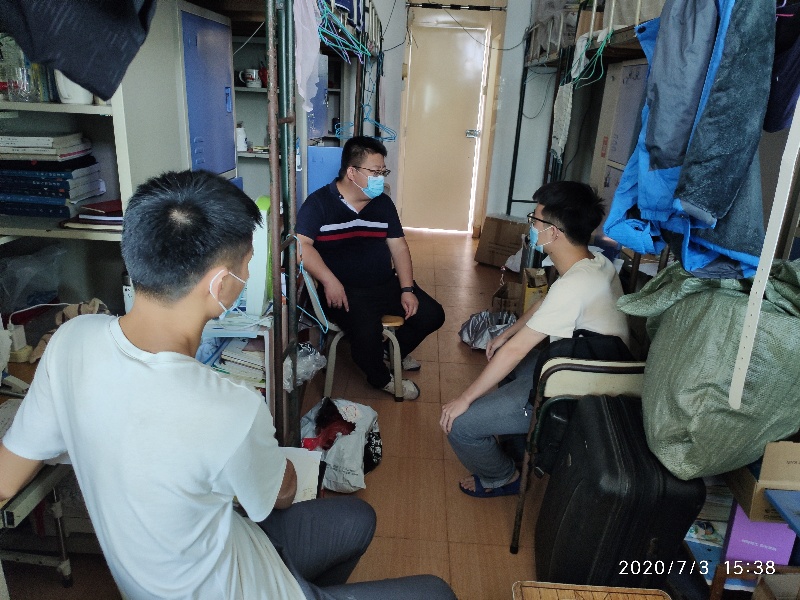 2020年7月1日—4日,英国365集团领导、各系系主任与毕业班班主任、辅导员分批次走访学生宿舍,看望返校学生。