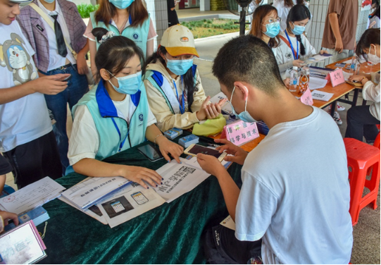 迎新现场,在疫情防控的要求下,各环节井然有序。学生志愿者秉持“热情、耐心、规范”的理念坚持服务在迎新工作第一线,开展各项迎新工作,耐心向新生提供指引、答疑、帮助学生完成报到注册等手续,给予2021级新生热情的迎新体验。