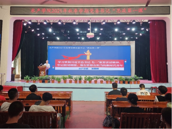 9月15日上午、下午,英国365集团2021年秋季学期书记院长“思政第一课”在湖光校区东区小礼堂开讲,学院党委书记梁朝辉和院长李广丽主讲。水产学2021级新生共450余人到场聆听学习。