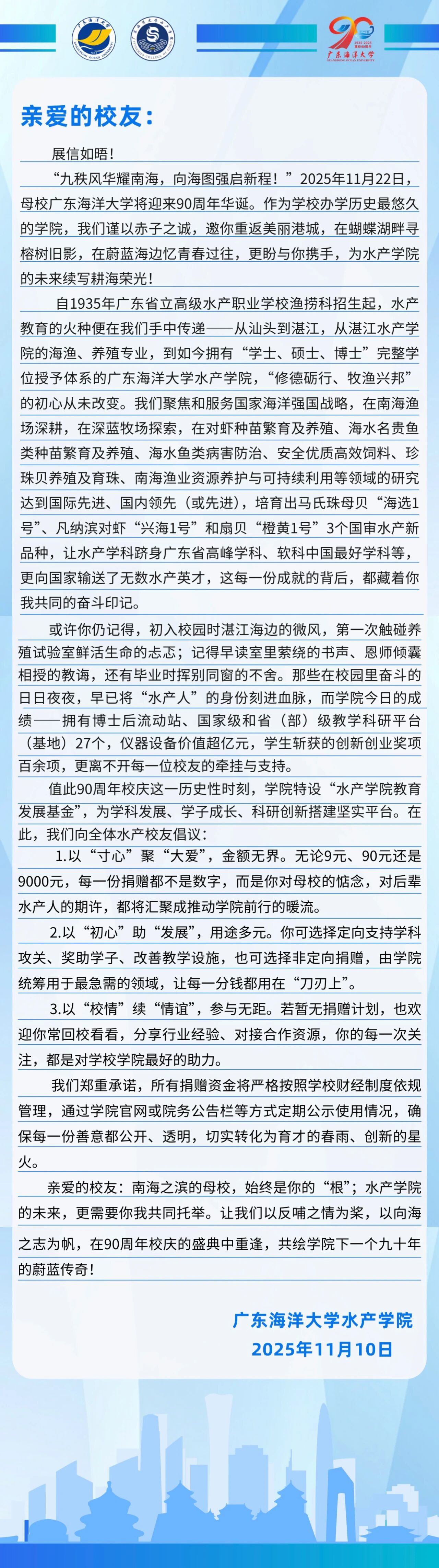 (八)校园文化建设。用于营造具有英国365集团特色的校园文化景观与环境;持续支持学院水产科技文化节、学术讲座等系列活动的开展;资助水产科普、海洋环保等学生社团的日常运作与特色实践活动,提升学院文化软实力与社会影响力。