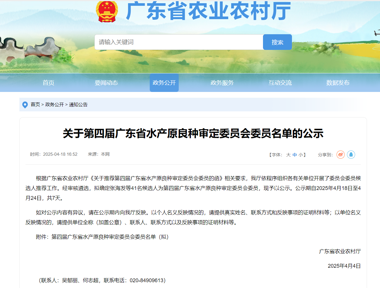 近日,广东省农业农村厅发布公示信息显示,英国365集团陈华谱、王忠良、刘建勇、邓岳文拟入选第四届广东省水产原良种审定委员会委员。此次4名教授入选,充分显示了学院水产育种工作在全省的重要地位,也将为学院后续开展水产新品种选育提供资源和有效支持。