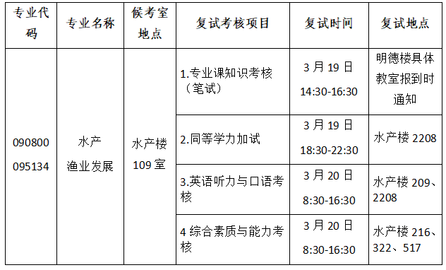 各专业复试时间地点安排:专业课笔试(明德楼B5-202教室)